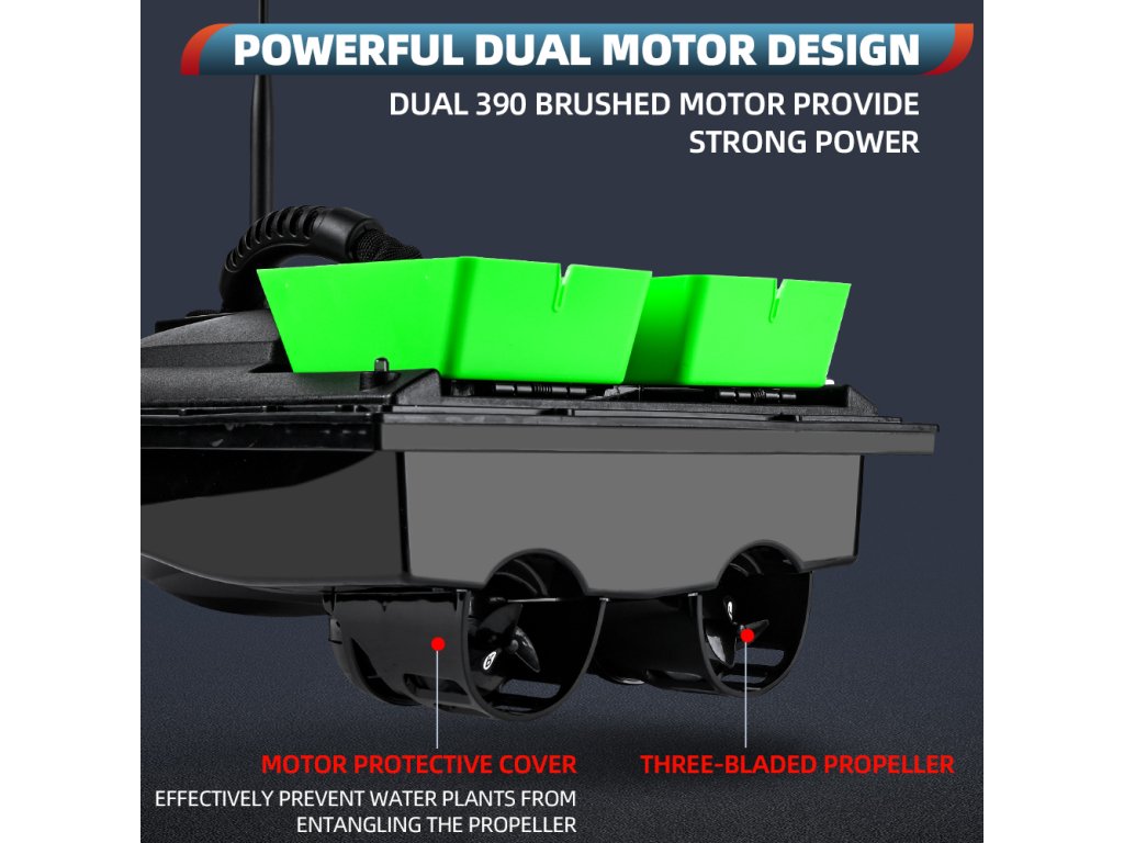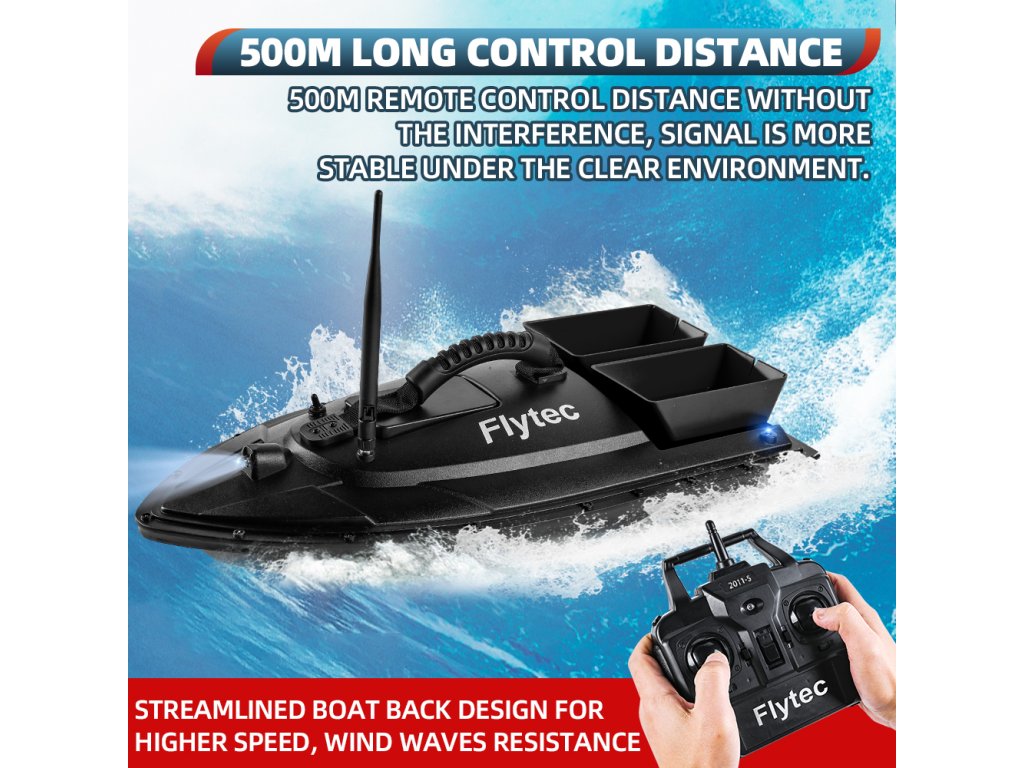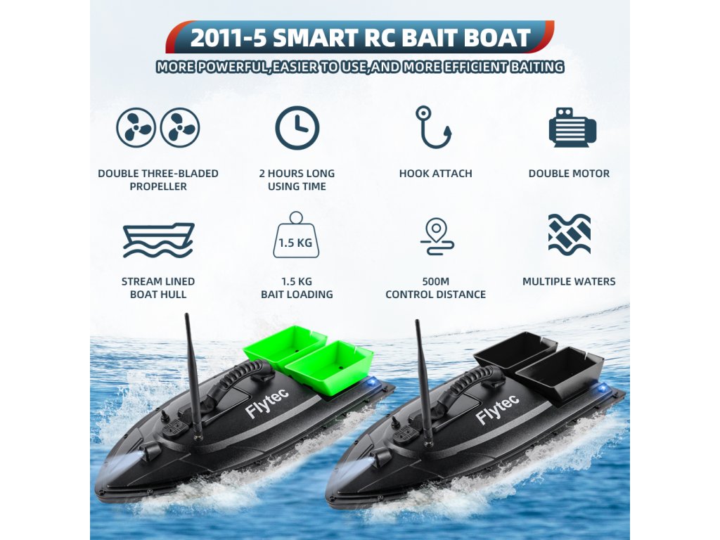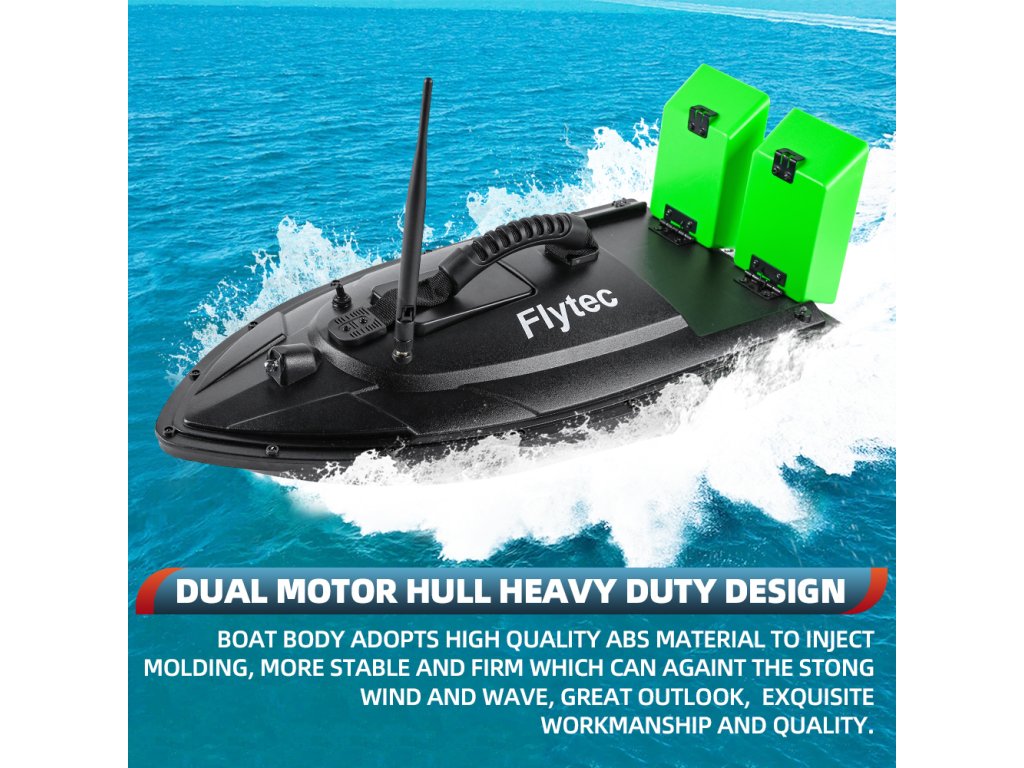 A Flytec 2011-5 egy megbízható, két tartályos etetőhajó, amelyet kifejezetten pontyhorgászok számára terveztek. A hajótest strapabíró ABS műanyagból készült, ellenáll a szélnek és kisebb hullámzásnak. A két külön vezérelhető csalitartály összesen 1,5 kg csalit képes célzottan kijuttatni akár 500 méteres távolságra.