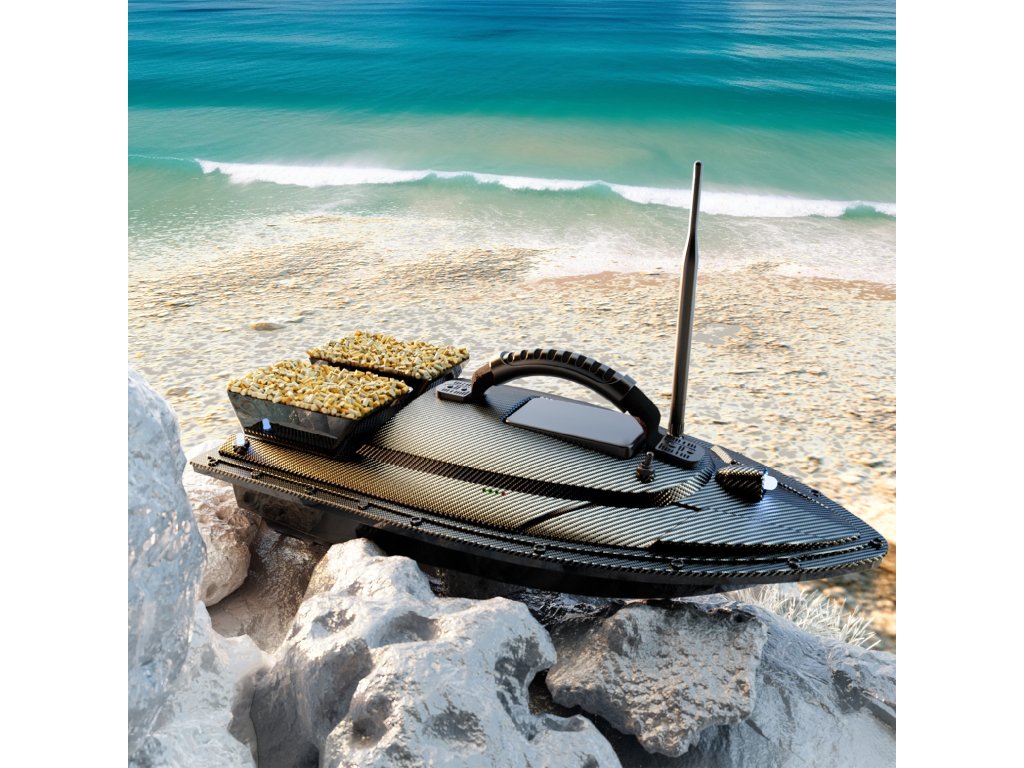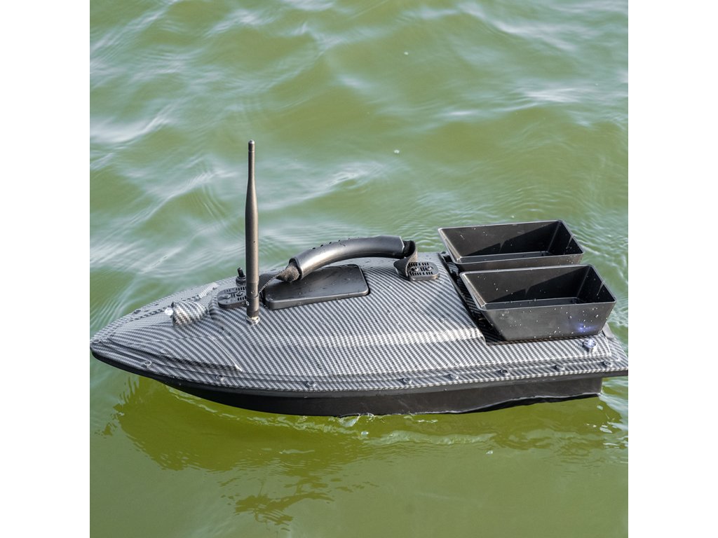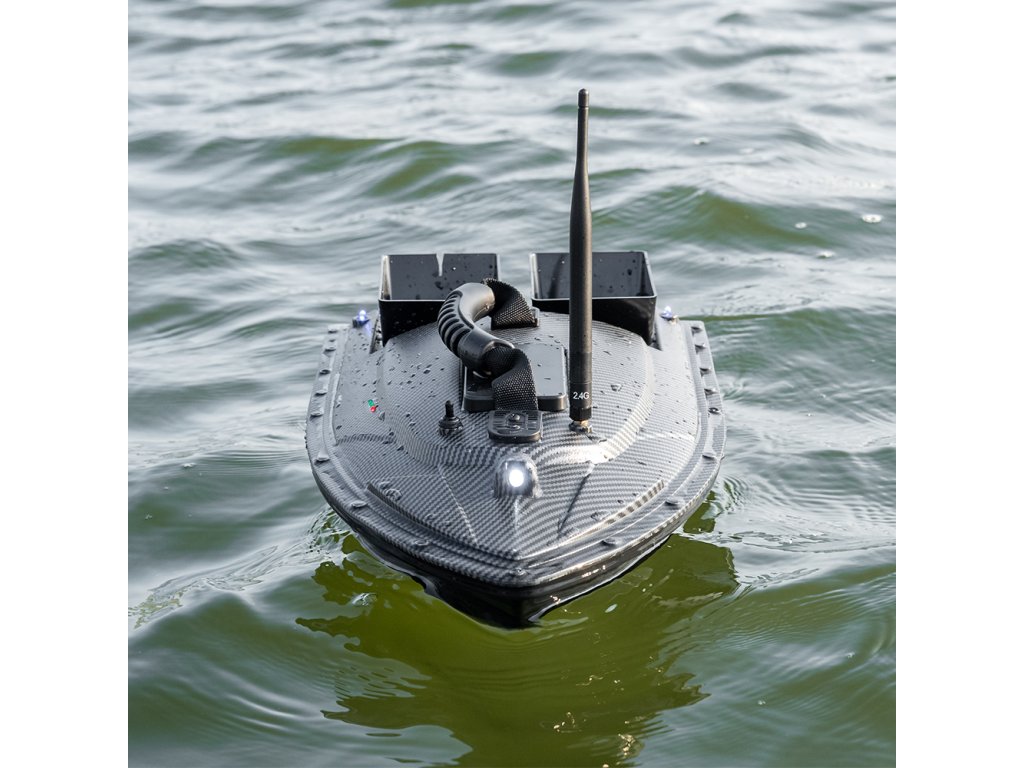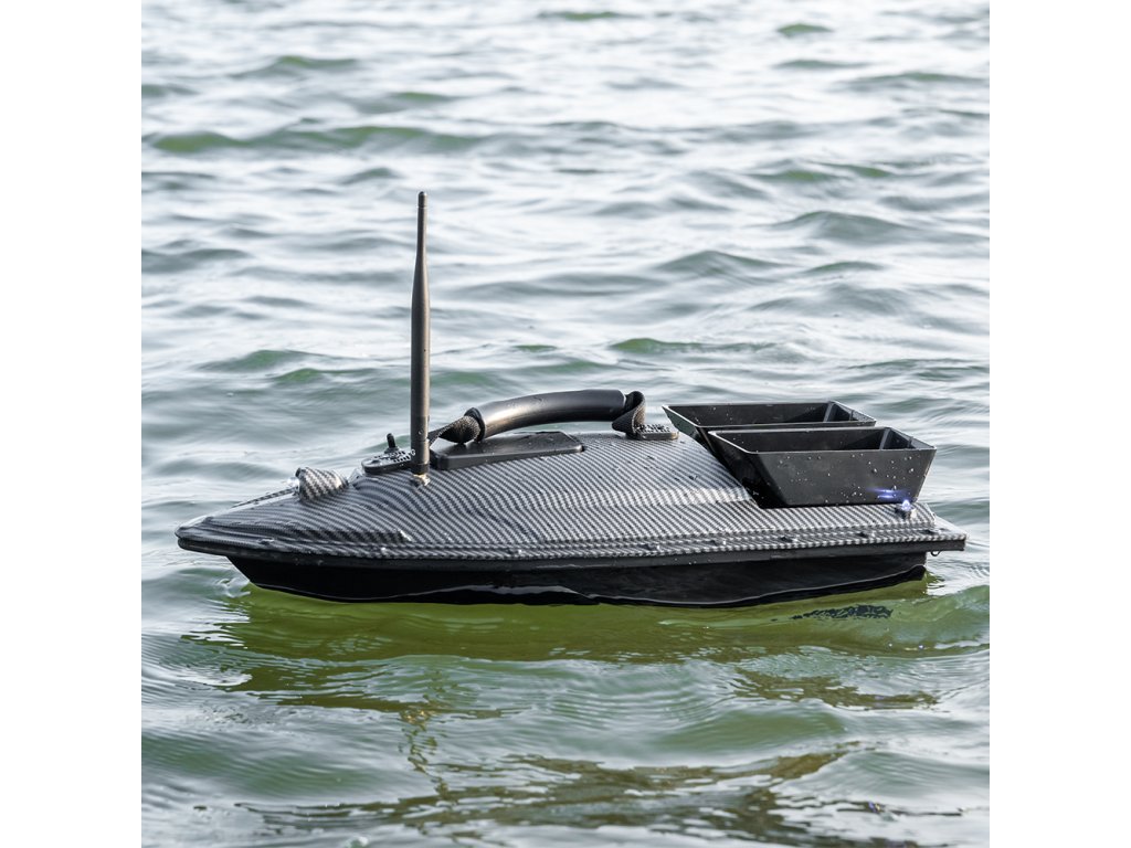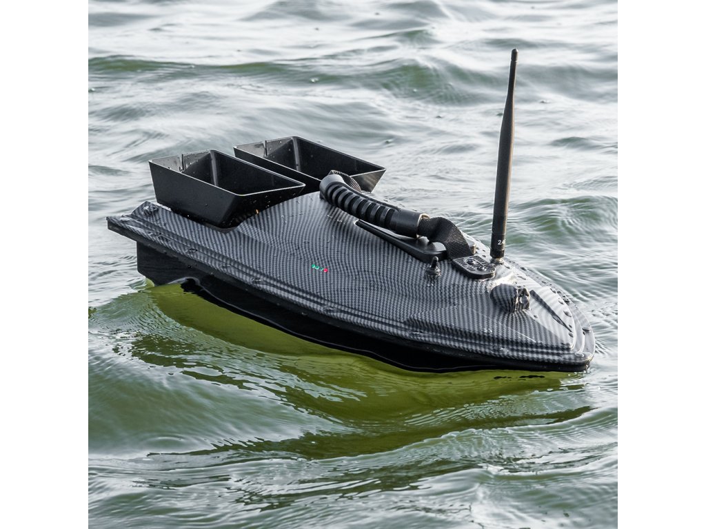 A hajó 500 méteres hatótávval működik, és automatikusan visszatér, ha a jel megszakad, az akkumulátor lemerül, vagy túlléped a vezérlési távolságot. Két különálló, nagy kapacitású csalitartálya 1,5 kg csalit képes szállítani, akár külön adagolva is.