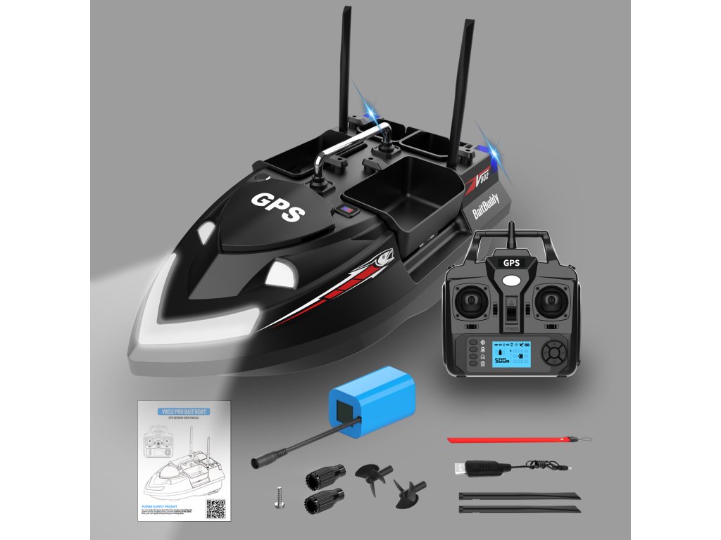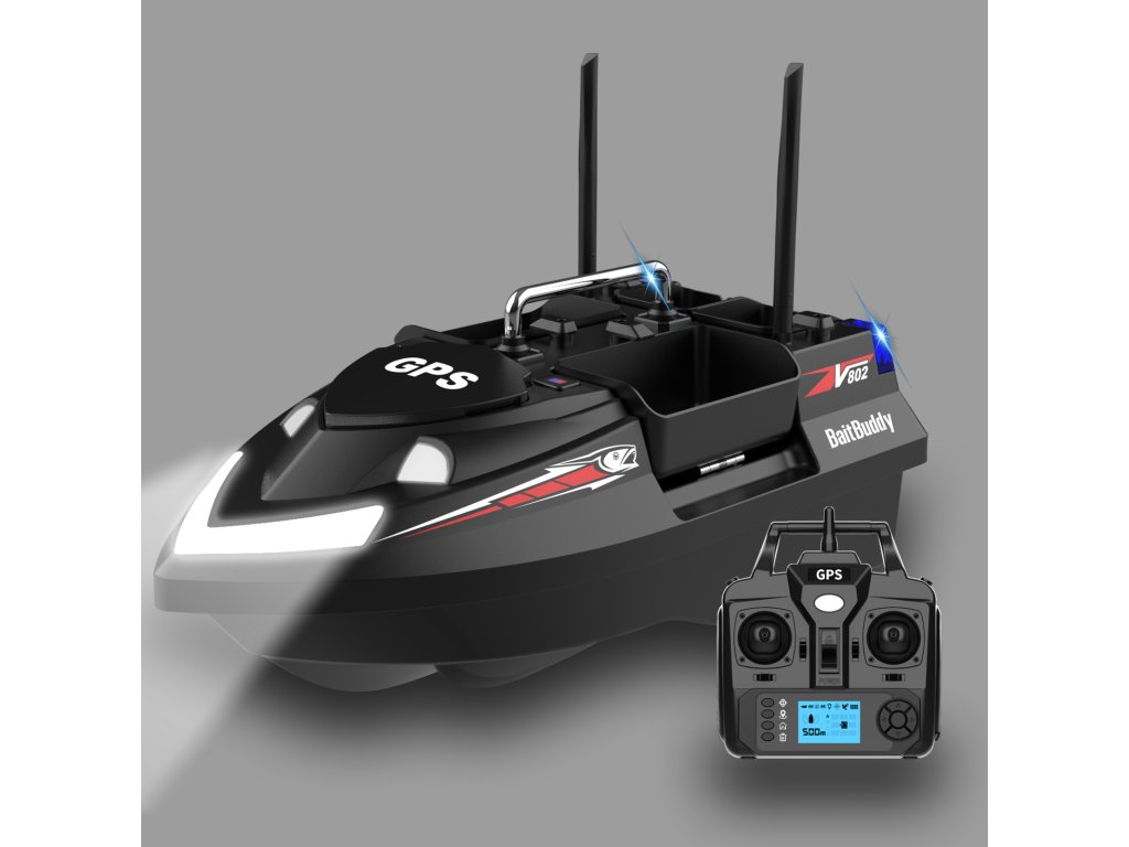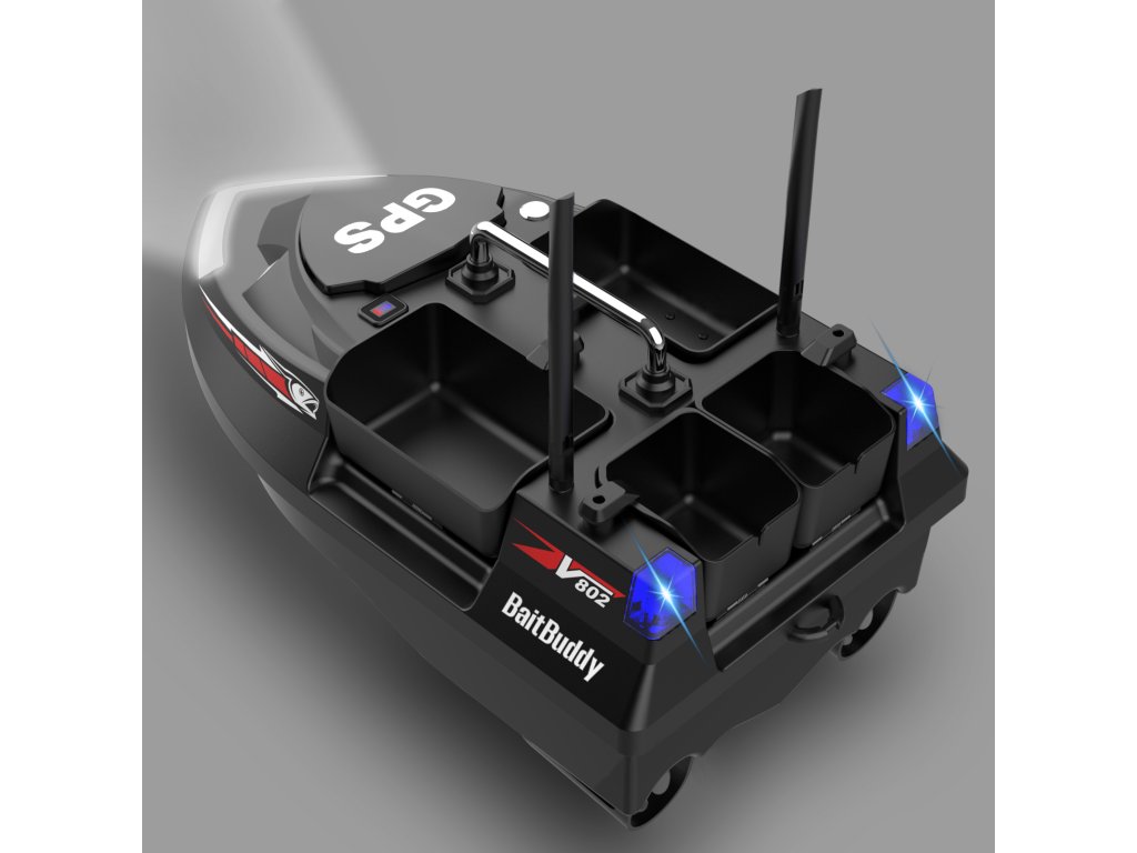 A Flytec V802 Pro Black egy modern, két tartályos etetőhajó, amelyet kifejezetten pontyhorgászok számára terveztek. Strapabíró ABS műanyagból készült, ellenáll a szélnek és kisebb hullámzásnak. A két külön vezérelhető csalitartály összesen 2 kg csalit képes célzottan kijuttatni akár 500 méteres távolságra.